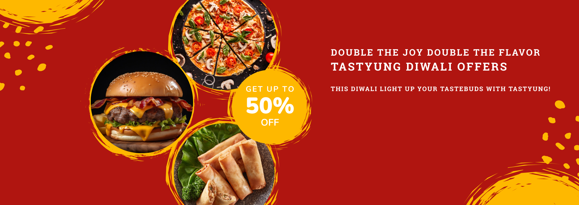 From sizzling snacks to delightful combos enjoy our exclusive festive offers crafted to make your celebrations brighter and tastier. Whether it’s a family get-together, a friends’ party, or a sweet treat for yourself Tastyung is here to spread joy with every bite.