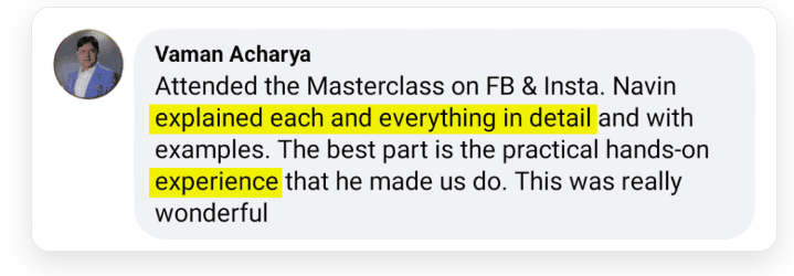 Hello, I am Navin Parmar, theChief Marketing Officer, Facebook & Instagram Ads Expert & your Facebook & Instagram Ads trainer. I help business owners, coaches, consultants and digital marketing enthusiasts run highly profitable Facebook & Instagram Adscampaigns.